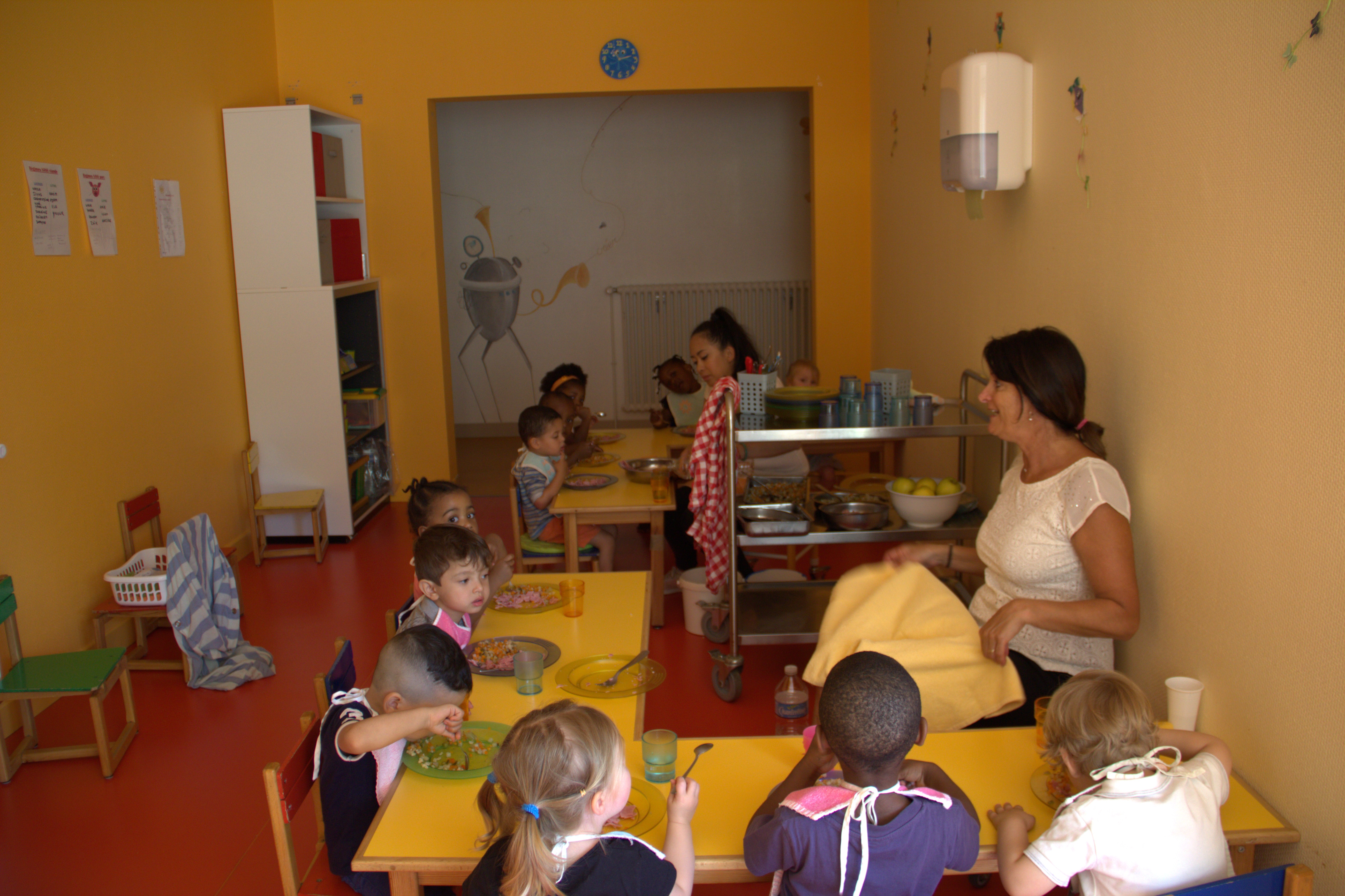 La journée est rythmée en fonction des besoins de l'enfant mais les repas et les siestes sont collectifs.